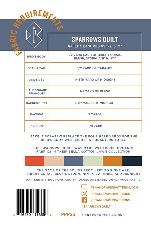 Printed Paper PatternFinal Product: QuiltFinished Size: 65 1/2" x 71"Technique: Standard Machine SewingSkill Level: Confident Beginner
