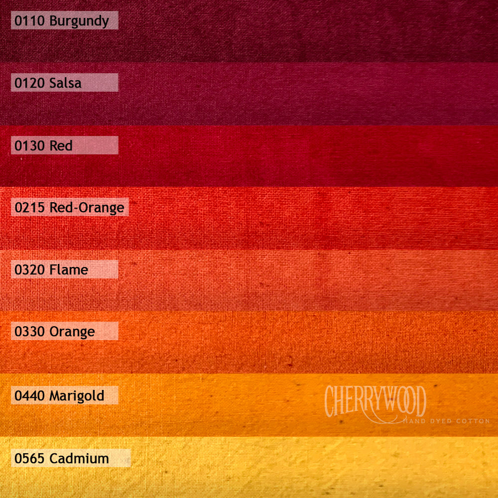 No commercially-dyed fabrics can duplicate the richness and depth of hand-dyed Cherrywood solids. Their unique colors can be described as brushed, sueded, and earthy, adding visual texture to your projects. Sold in color bundles of fat quarters, half yards, and full yards, every piece of Cherrywood fabric is unique and hand dyed on unbleached muslin in Baxter, Minnesota.