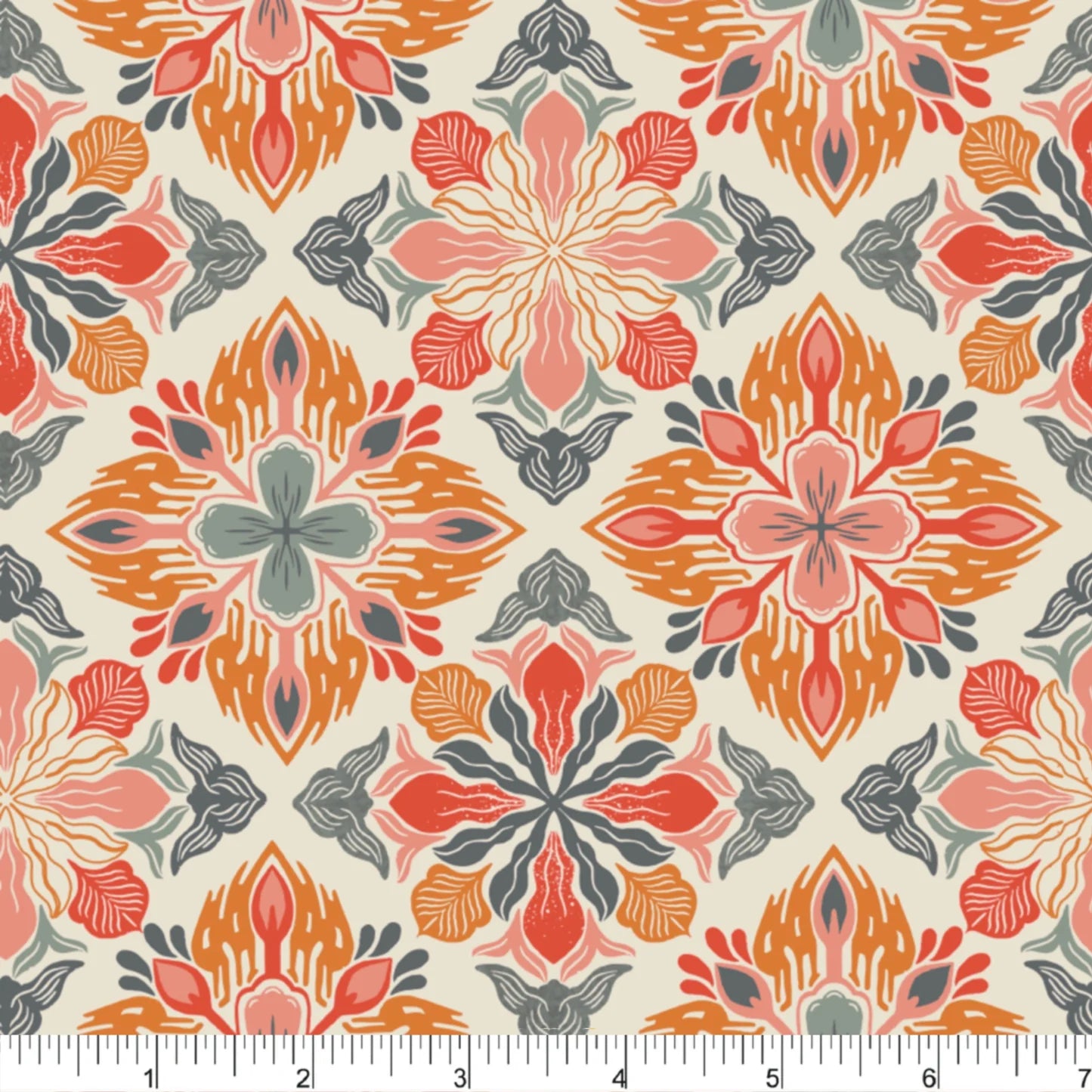 Beautiful cream background, deep oranges, golds.