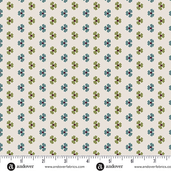Dark teal/green flowers on lighter cream background.