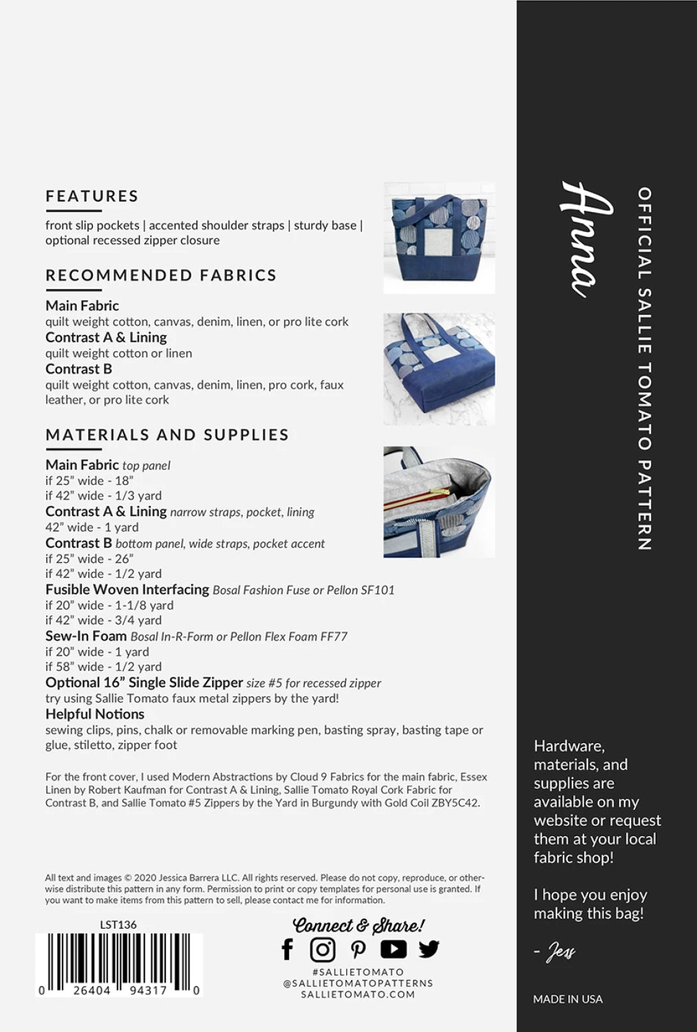 Anna is a trendy tote that has been designed for beginners! This pattern is an updated version of the first bag pattern I ever wrote, The Stylish Sturdy Tote. The name of this updated pattern was inspired by Anna Wintour, and her passion to do what she loves. The finished size is 17-1/2" wide, 15" high, and 5” deep.  Additional pockets can be added to the lining on your own if you want interior pockets.